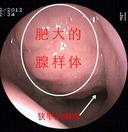 ③腺样体面容。针对腺样体肥大会出现什么症状而言,长期鼻塞及张口呼吸,可引起面骨发育畸形,如上颌骨变长、硬腭高拱等,加上精神委靡,面部表情愚钝,形成所谓“腺样体面容”。